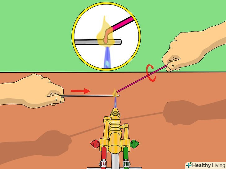 - Якщо захочете взяти спицю іншою рукою, зробіть це перед пальником. Не заводьте руки за полум'я.