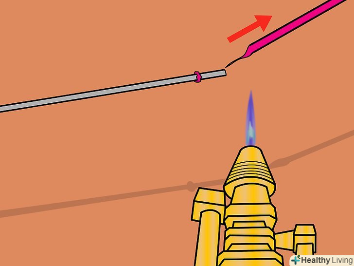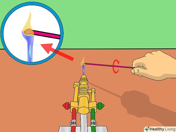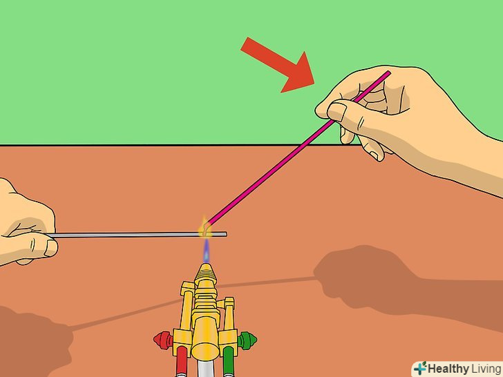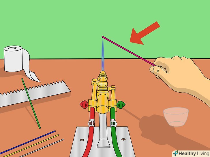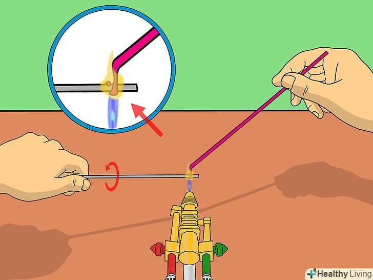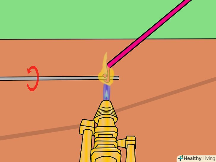 Продовжуйте тримати спицю і скло в полум'я. у міру того, як ви будете накручувати скло, паличка буде нагріватися і плавитися далі.