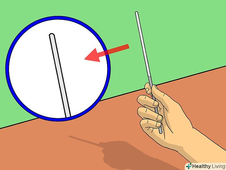 Після того, як ви намотаєте достатню кількість розплавленого скла, приберіть скляну паличку в сторону (при цьому продовжуйте обертати спицю в полум'я). від спиці простягнеться довга тонка нитка зі скла - просто дайте їй розплавитися у вогні.- Відкладіть скляну паличку.