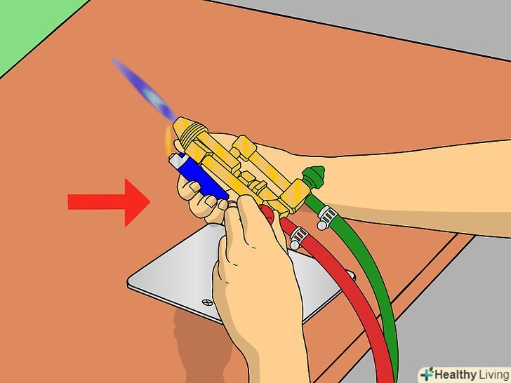 Налаштуйте пальник. Полум'я повинно прийняти витягнуту конусоподібну форму. Якщо полум'я рветься в різні боки, зменшіть газ.
