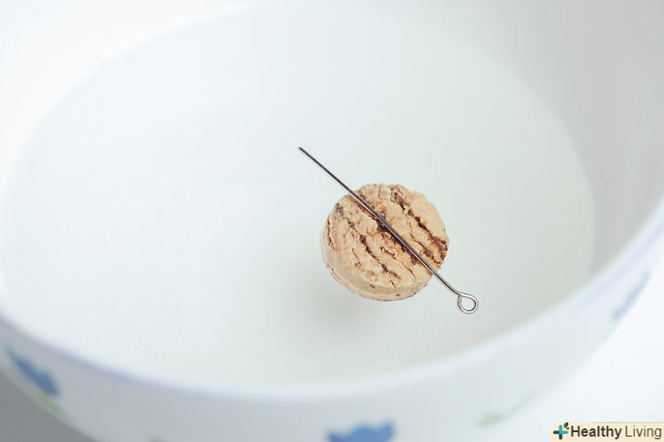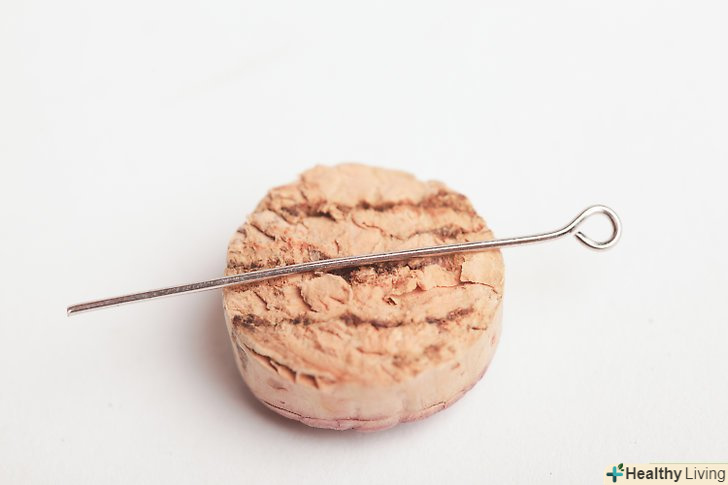 Проткніть голкою пробку. зробіть це горизонтально, щоб голка увійшла з одного боку пробки і вийшла з іншого. Встановіть голку так, щоб вона стирчала з пробки з обох сторін рівномірно.- Якщо голка занадто велика, просто покладіть її на поверхню пробки.