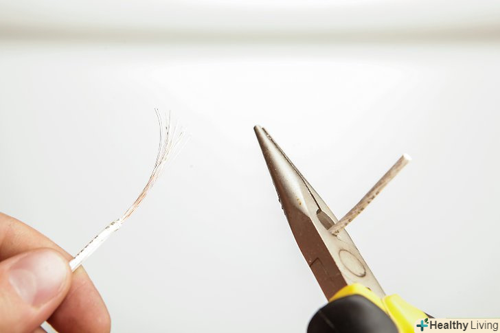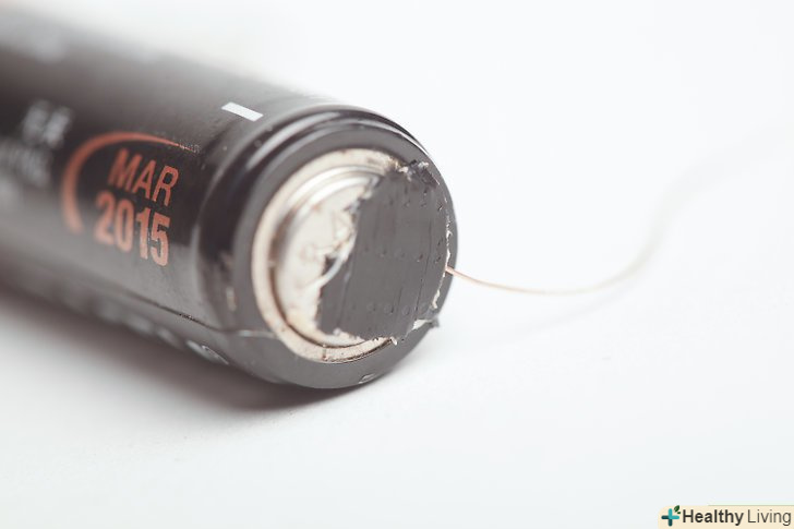 Оголіть кінець дроту. за допомогою інструменту для зачистки видаліть з обох кінців мідного дроту кілька сантиметрів ізоляції. Ці кінці будуть закріплюватися на батарейці.