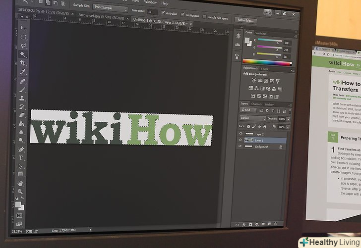Подивіться, як буде виглядати дзеркальне відображення малюнка. особливо це важливо для світлих тканин. [5] перевірте, щоб малюнок відбивався правильно. Так він залишиться таким же після перенесення. Це особливо важливо, якщо ваш малюнок містить текст. На екрані або на термопапері букви повинні бути розгорнуті в зворотному напрямку. Якщо ви не зробите дзеркальну копію малюнка, то після перенесення на тканину він буде розгорнутий в протилежну сторону.- Щоб дзеркально відобразити зображення на комп'ютері, можете використовувати опції «зворотний вид», «розгорнути зображення по горизонталі» або «дзеркало» у вашій програмі. Перегляньте розділ "Довідка" використовуваної програми для додаткової інформації.