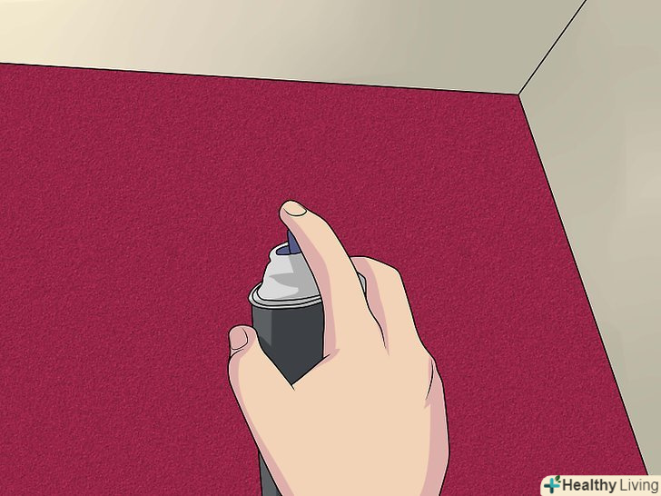 Обробіть килим фарбою. починайте фарбувати килим з найдальшого кута від дверей і поступово просувайтеся до виходу, щоб вам не довелося наступати на мокру фарбу. У багатьох випадках фарба для килимів підлягає розпорошенню на поверхню. Це досить просто, вам буде потрібно лише взяти порожній пульверизатор, який, можливо, де-небудь валяється у вас вдома, і залити в нього фарбу. Будьте обережні, щоб не пролити фарбу. Краще буде спочатку налити її в кухоль і тільки потім перелити в пульверизатор. Для роботи вам прекрасно підійде порожній пульверизатор від засобу для миття вікон або будь-якого іншого господарського засобу. [6] [7] розпорошивши фарбу на поверхню килима, втирайте її в його волокна. Використовуйте для цього щітку з жорсткою щетиною і працюйте нею круговими рухами. Обов'язково приділяйте час тому, щоб перевірити, що всі волокна килима рівномірно покриті фарбою, якщо поглянути на них під різними кутами. Знайте, якщо посилено затирати килим, його ворс почне розплітатися. Мітучі односпрямовані руху щітки-єдиний спосіб розподілити фарбу без шкоди для килимового ворсу.