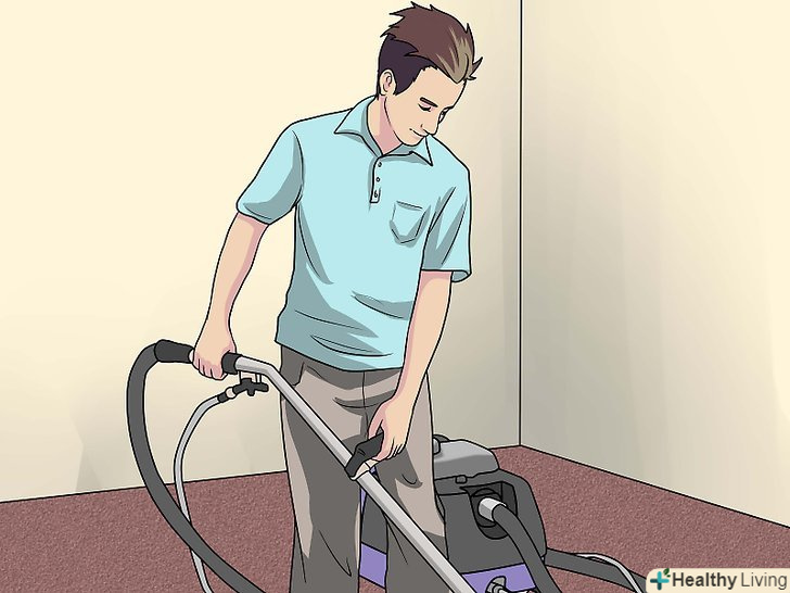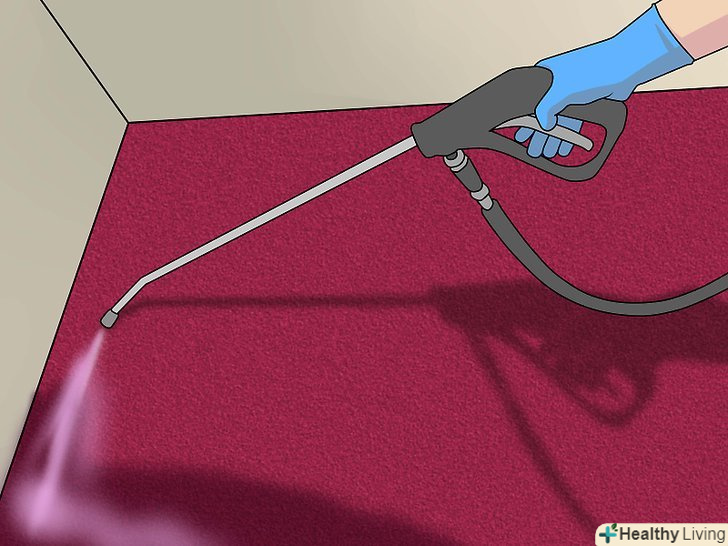 Ретельно почистіть килим. [4] Обов'язково дотримуйтесь інструкції з експлуатації до того пароочисника, яким користуєтеся. Це обладнання може виявитися небезпечним, крім того, ви повинні бути впевнені в тому, що воно якісно виконує поставлене перед ним завдання. Обов'язково обробіть пароочисником всю площу килима не менше двох разів. Непогано буде скористатися тим же підходом, що і при стрижці газонів – обробляйте килим послідовними паралельними смугами, поки не очистите всю його забруднену площу.