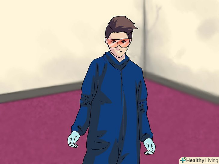 Надіньте підходящу для роботи одяг. не варто вбиратися в хороші світлі штани (наприклад, кольору хакі) або в улюблену сукню. Досить великий ризик того, що частина фарби потрапить на ваш одяг. Також вам буде потрібно надіти захисні окуляри і, можливо, рукавички.