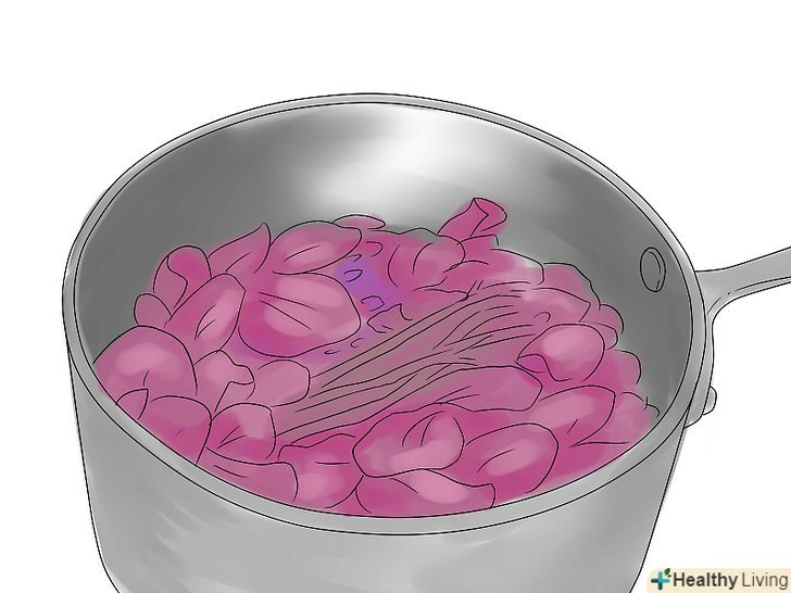 Акуратно покладіть пелюстки троянди і квіти лаванди в воду, потім зменшіть вогонь і залиште каструлю на плиті.