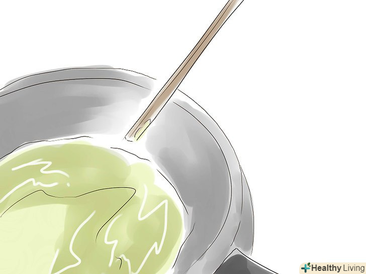 - Перемішуйте, поки суміш гарненько не загусне і поки на поверхні мильної суміші не залишиться слід. це може зайняти п'ятнадцять хвилин, півгодини або навіть довше, залежно від типу масел, які ви використовуєте. Помішуючи розчин вручну, рукою, використовуйте кухонний прилад з нержавіючої сталі або термостійкого пластику, і врахуйте, що він може поржавіти після тривалого використання.