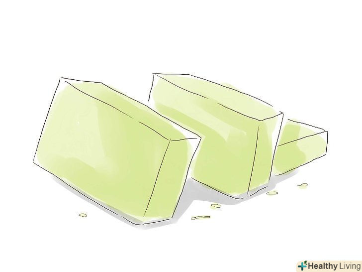 Зачекайте 24 години, перш ніж розрізати масло брусочками. для процесу "омилення", який сприяє затвердінню мила і готовності до розрізання, потрібно близько доби. Вийміть його з форми, почекавши потрібний час, і розріжте на зручні, невеликі шматки.- Зберігайте мило при кімнатній температурі в недоступному для дітей місці. Його як і раніше небезпечно чіпати деякий час після приготування.