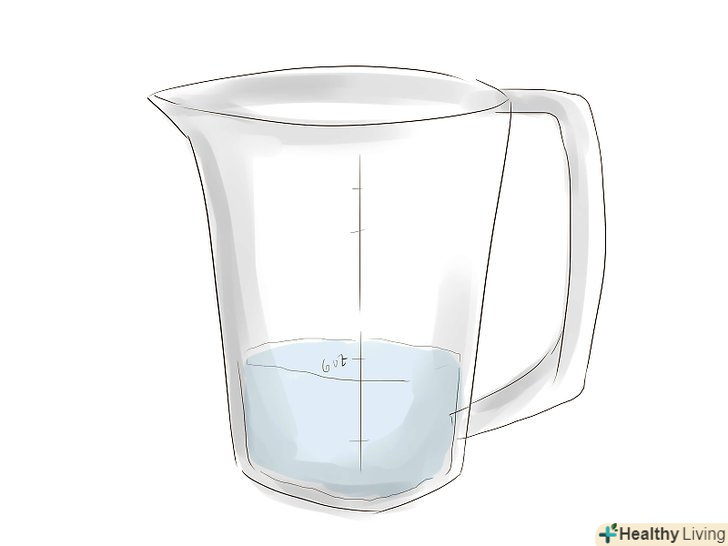 Налийте воду в безпечний контейнер. Відміряючи кількість за рецептом або за допомогою калькулятора, влийте воду в склянку з термостійкого скла або пластиковий контейнер, такий як мірний стакан «Pyrex». Метал нагрівається і може викликати корозію при додаванні лугу, тому для миловаріння не рекомендується використовувати посуд навіть з нержавіючої сталі.- Якщо ви готуєте півпорції, зазначеної у вашому рецепті, для першої партії не забудьте скоротити вдвічі кількість кожного інгредієнта, а не тільки масла.