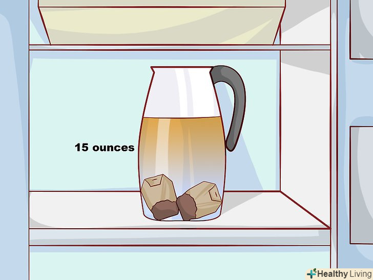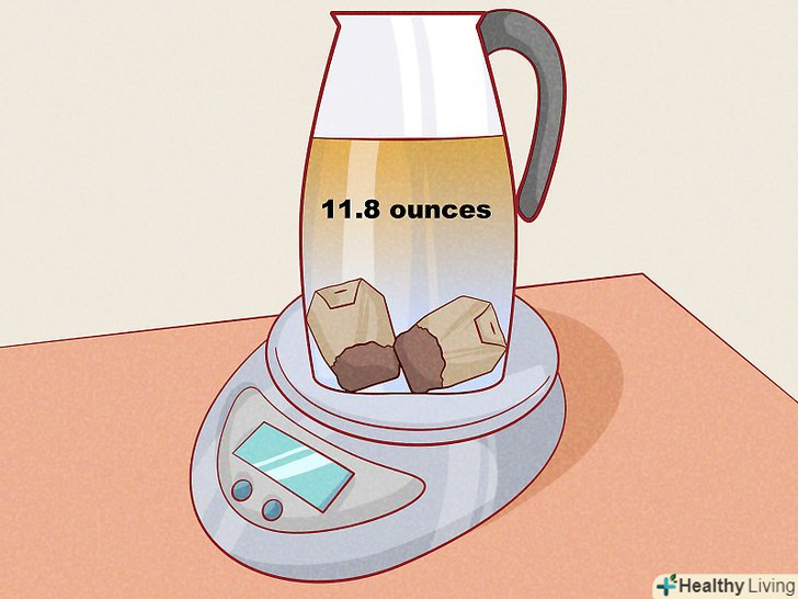 Налийте чай в жароміцний глечик. використовуйте Електронні кухонні ваги, щоб відміряти 335 грамів готового зеленого чаю. Налийте його в жароміцний глечик. [15] залишки чаю використовуйте на свій розсуд. Можна випити його, вилити або використовувати в іншому рецепті.- Відміряйте воду на вагу, а не за допомогою мірної склянки.