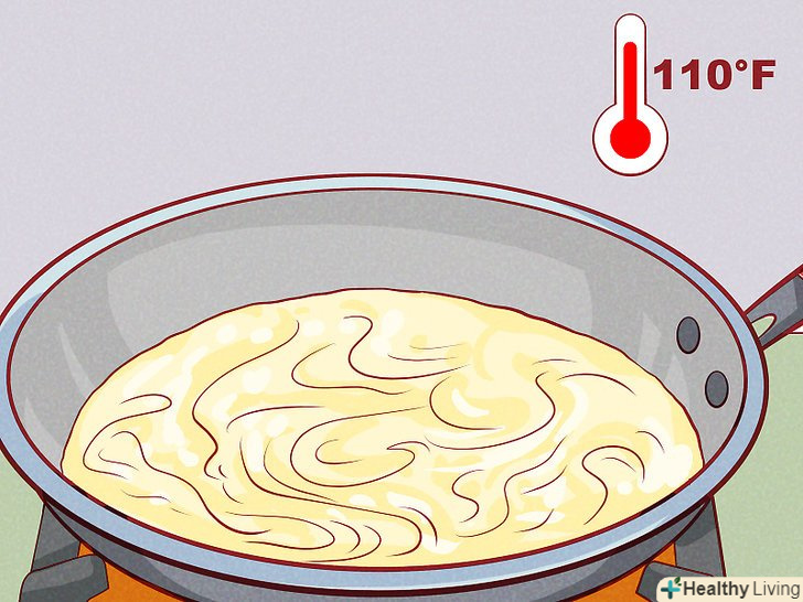Дайте милу охолонути протягом 12-24 годин. не ставте його в холодильник або морозильну камеру. [10] не варто цього робити, навіть якщо вам здається, що ця ідея не дуже погана. Гаряче мило змінить температуру всередині холодильника або морозильної камери і може надати їжі специфічний запах.- Щоб поверхня мила стала абсолютно гладкою, накрийте форму харчовою плівкою, перш ніж охолоджувати мило. Акуратно притисніть плівку до мила. [11]
