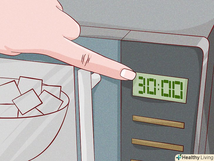 Розплавте мильну основу в мікрохвильовці. покладіть кубики в спеціальну скляну ємність для мікрохвильової печі. Нагрівайте з інтервалами в 15-30 секунд, поки основа не почне плавитися. Перемішуйте основу між нагріваннями. [3]