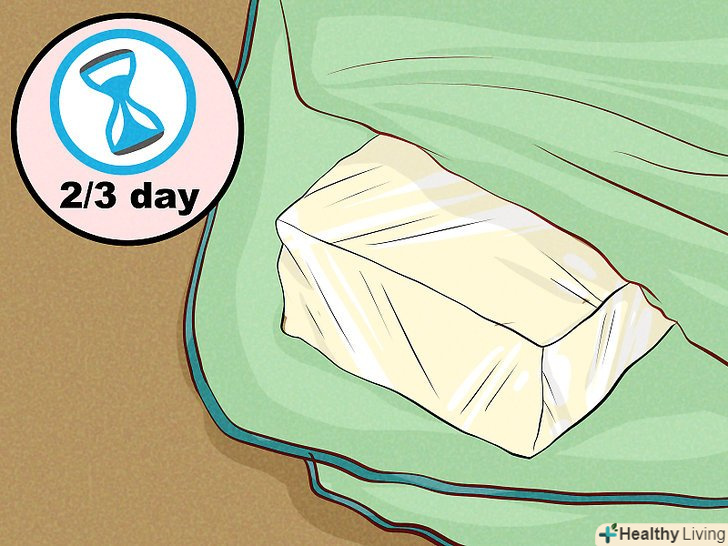 Поставте форму з милом в затишне місце, щоб воно повністю застигло. накрийте мило поліетиленовою плівкою, а зверху покладіть складений рушник або покривало. Почекайте 1 день, перш ніж продовжити, якщо використовуєте дерев'яну форму, і 2-3 дні — якщо користуєтеся силіконової. [22]