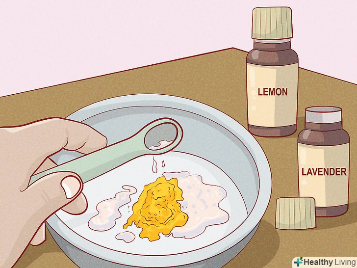 Додайте трохи ефірного масла або спеціальний ароматизатор для миловаріння. всього знадобиться 2 чайних ложки аромату. Можна використовувати тільки один вид масла або комбінувати 2-3 види для того, щоб створити унікальний аромат. Відмінним вибором стануть ефірні масла лимона і лаванди. [5] особливо добре поєднується з куркумою ефірне масло чебрецю. [6]- Для витонченого аромату використовуйте зовсім небагато ефірного масла
