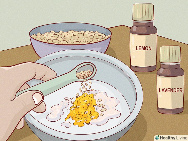 За бажанням можна додати отшелушивающие речовини. спробуйте додати в вашу суміш трохи вівсяних пластівців тонкого помелу — цей продукт особливо корисний для шкіри, схильної до утворення прищів. [7] можна використовувати і інші отшелушивающие кошти, наприклад порошок з абрикосових кісточок, який можна придбати у відділі миловаріння в магазині товарів дял рукоділля. Використовуйте 1 чайну ложку отшелушивающего речовини за своїм вибором.
