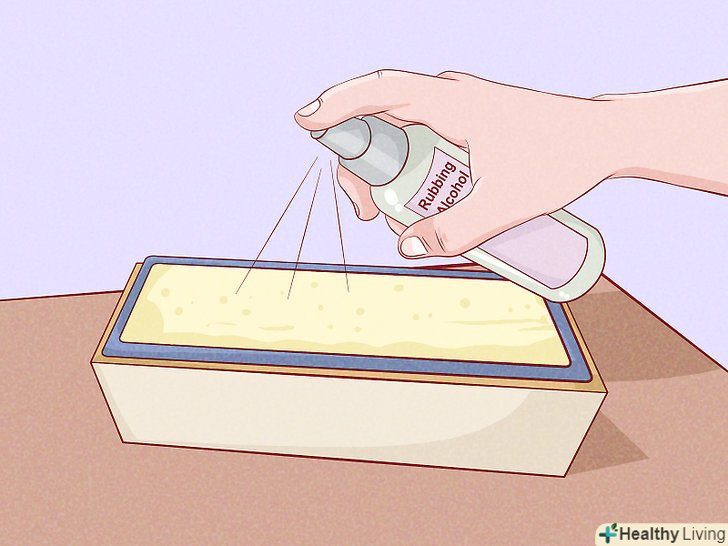 Обережно постукайте за формою. При цьому на поверхні можуть з'явитися бульбашки повітря. Щоб позбутися від них, акуратно розпорошите поверх суміші розчин медичного спирту. [9]