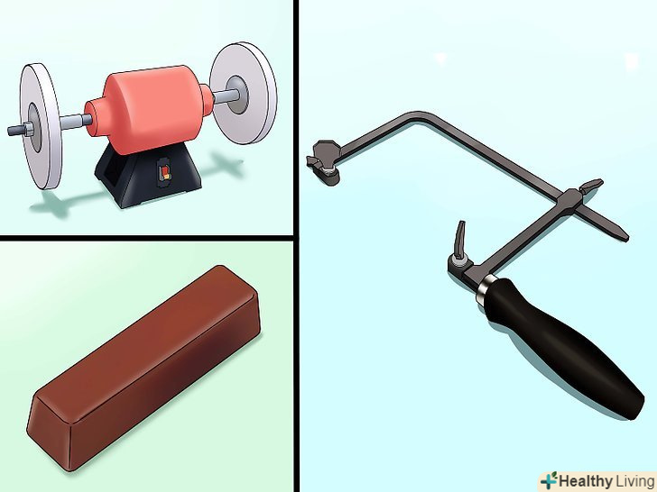 Зберіть всі потрібні матеріали та інструменти. Срібло не можна просто розрізати ножівкою - його потрібно буде відполірувати, щоб позбутися від гострих кутів. Спеціальні інструменти можна купити в магазинах рукоділля, господарських магазинах і в Інтернеті. Вам буде потрібно:- Ювелірна ножівка з номером леза 2/0.