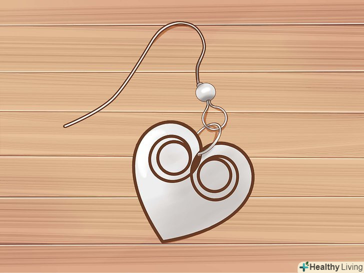 Прикріпіть до кожної сережки гачок. висвердлите маленький отвір в кожній сережці, вставте гачок, перекрутіть його або закріпіть іншим способом, щоб він не відірвався. Якщо ви робите не сережки, пропустіть цей крок.