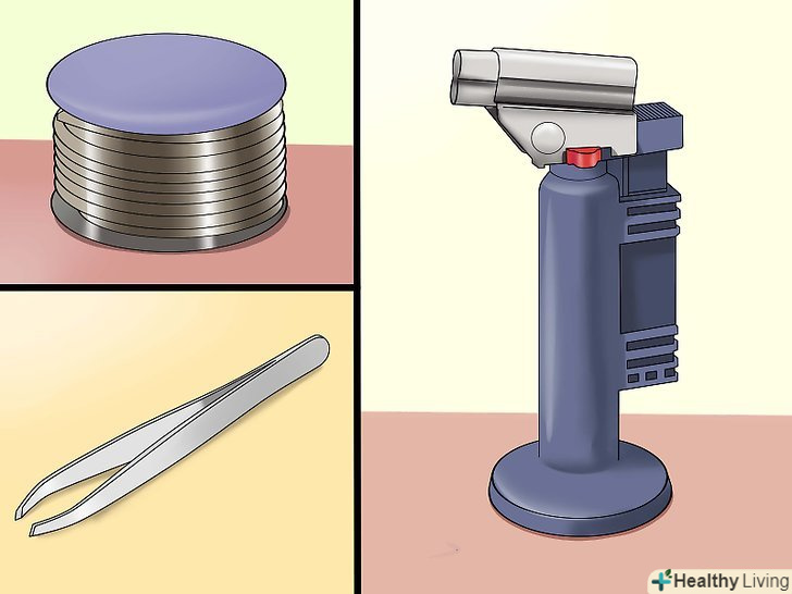 Зберіть необхідні матеріали та інструменти. якщо ви хочете з'єднати кілька елементів, найпростіше зробити це за допомогою плавки. Звичайно, процес зажадає ретельної підготовки, а також наступних матеріалів та інструментів:- Припой зі срібла середньої жорсткості або жорсткого срібла, отриманого з срібного сплаву, а не звичайний припій. Не купуйте припой з кадмієм, якщо тільки у вас немає респіратора. [17]