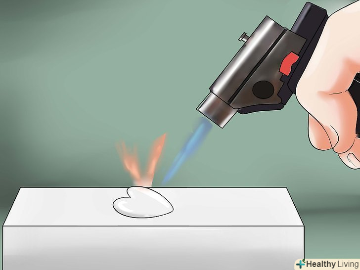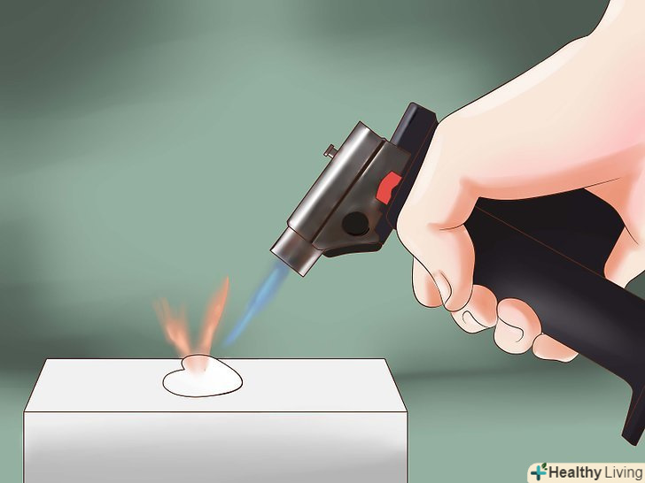 Нагрійте глину пальником. якщо у вас пальник, покладіть глину на цеглу, а цегла - на жароміцну поверхню. Тримайте пальник в двох сантиметрах від глини і нагрівайте її до тих пір, поки вона не загориться. Вона почне горіти, потім стане світитися червоним від розжарювання, а потім світло стане слабким. Нагрівайте глину не менше п'яти хвилин або стільки, скільки вказано в інструкціях на упаковці. [6]- Час від часу відводите очі, щоб вони могли відпочивати.