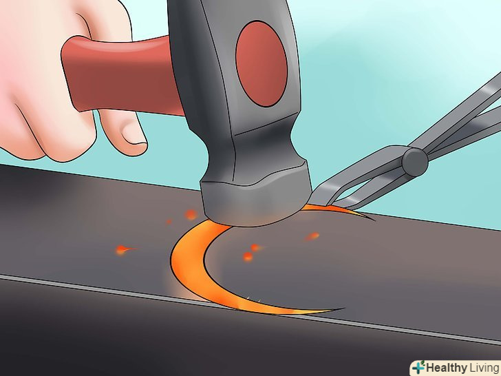 Молотки різного розміру використовуються для різних речей. щоб все вийшло дуже точно, можна користуватися декількома молотками. Найчастіше ювеліри працюють з плоским або гострим круглим молотком, часто - різних розмірів. [20] після надання потрібної форми скористайтеся молотком для текстурування - це змінить фактуру срібла. Молоток для вигладжування згладить ямки і нерівності. [21]- Найкраще ударяти молотком під кутом 90 градусів.