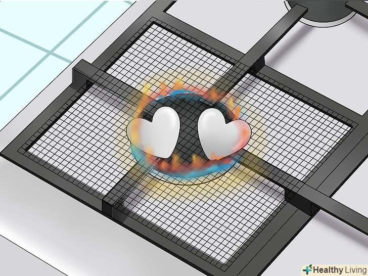 Нагрійте глину на плиті. Якщо у вас газова плита, вам потрібно буде поступити наступним чином:- Поставте на плиту сталеву решітку. Увімкніть конфорку на максимальну потужність.