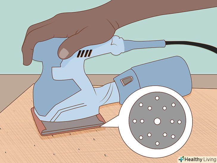 Використовуйте ексцентрикову віброшліфмашину для швидкого отримання потрібних результатів і менших трудовитрат. Ексцентрикова віброшліфмашина являє собою спеціальний електроінструмент, який переміщує наждачний папір по плоскій поверхні в випадково обраних напрямках. Все, що від вас вимагається — це закріпити наждачний папір на шліфмашині, взяти її за рукоятку і почати водити приладом по оброблюваної поверхні. Також ексцентрикові віброшліфмашини зазвичай наділені пилозбірником, куди потрапляє вся виникає при роботі пил. Віброшліфмашину такого типу можна придбати як в найближчому магазині електроінструментів, так і замовити онлайн. [20]- Для ексцентрикової віброшліфмашини будуть потрібні круглі листи наждачного паперу зі спеціальними кріпильними отворами. Купити їх можна там же, де і саму шліфмашину. Не забудьте, що вам буде потрібно по упаковці наждачного паперу кожного типу: крупнозернистої, із середнім зерном і дрібнозернистої.