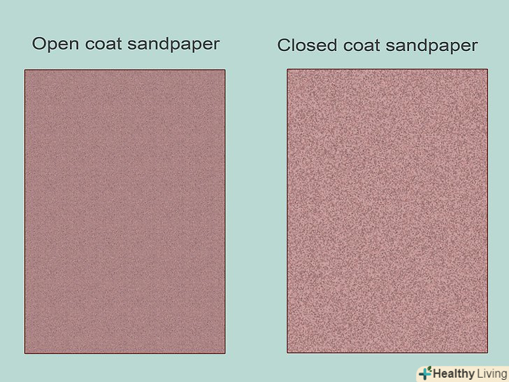 Використовуйте більш стійку наждачний папір відкритого насипання або більш потужну наждачний папір закритого насипання. Основа наждачного паперу закритого насипання повністю покрита зерном, що і робить її більш потужним абразивом. На основі наждачного паперу з відкритим насипанням менше зерен, тому вона не настільки ефективна, але наявність простору між зернами не дає наждачного паперу забиватися відходами обробки, що продовжує її термін служби. Використовуйте наждачний папір закритою насипки для більш твердих поверхонь, а відкритою — для більш м'яких. [11]