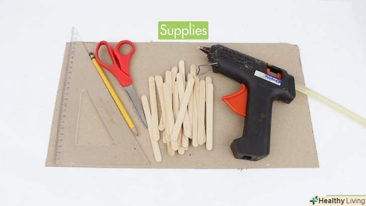Приготуйте необхідні матеріали. палички для виробів можна придбати в магазинах товарів для рукоділля, а аналогічні їм палички для морозива — в продуктових магазинах і супермаркетах. Конкретний тип паличок, які ви збираєтеся використовувати, залежить від того, яким ви собі уявляєте свій міст. Тільки обов'язково придбайте досить великий запас паличок, щоб матеріали не закінчилися посеред роботи. Для будівництва вам знадобиться наступне:- Палички для виробів (або палички від морозива);