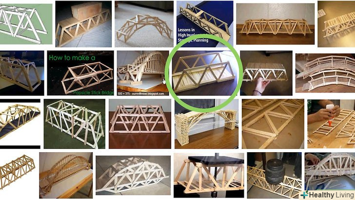 Визначтеся з типом моста, який будете будувати. існує кілька різних видів мостів: висячі, розвідні і арочні з наскрізними фермами. [1] Так як в фермах арочного моста використовуються трикутні конструкції, які підтримують і зміцнюють споруду, то даний тип моста ідеально підходить для створення проекту з паличок від морозива.- Далі по тексту статті буде розглянуто приклад створення моста на підставі класичної рівносторонньої ферми Уоррена. [2]