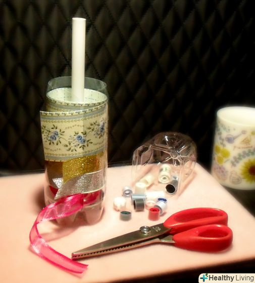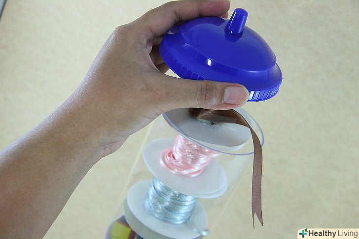 Приберіть банку на зберігання або залиште на загальний огляд. коли вам знадобиться стрічка, просто відкрийте кришку і витягніть штир зі стрічками.- Якщо ви не можете знайти спеціальну банку для соломинок, то можна просто використовувати високу банку, а до її кришці приліпити дерев'яний штир або інший довгий предмет. на інший кінець штирька приробити кришку з меншим діаметром, ніж сама банку за аналогією з банкою для соломинок.