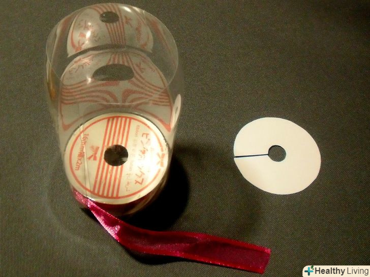 Дістаньте штир з середини банки. накрутіть навколо нього стрічку, сформувавши коло. Зафіксуйте стрічку від розмотування шматочком прозорого скотча.- Організуйте всі свої стрічки в будь-якому зручному для вас порядку.
