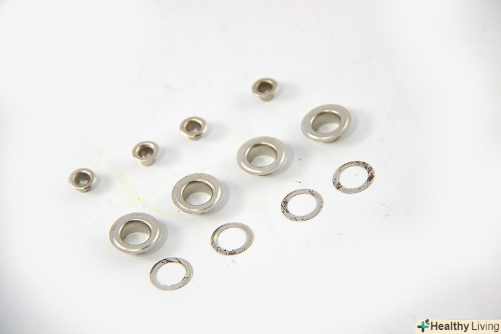 Купіть люверси і ручний прес для їх установки (найчастіше і те і інше продається одним набором). використовуйте люверси маленького розміру для вузьких стрічок, великі люверси – для широких, а середні – для середніх.