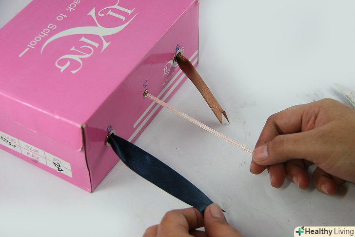 Протягніть всі стрічки у відповідні отвори, щоб їх можна було витягувати з коробки. закрийте коробку кришкою, і ваше сховище для стрічок готове. Помістіть коробку в відповідне місце неподалік від інших приладдя для рукоділля, щоб вона була вам легко доступна.