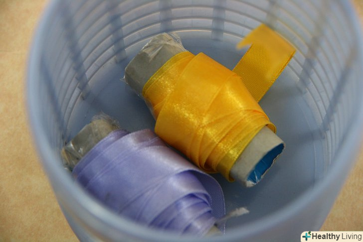 Знайдіть або виготовте невеликі картонні рулончики. Туго намотайте на них стрічки.