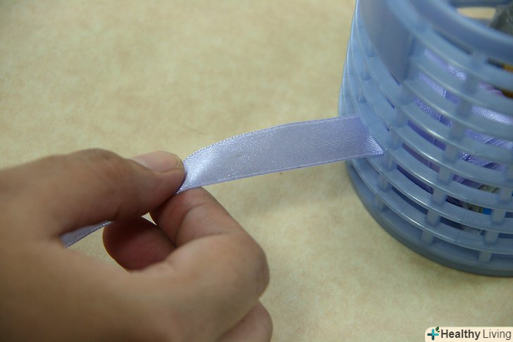 Витягніть кінчики стрічок в окремі отвори в стінках кошика. це необхідно зробити з обох сторін для двох рядів.- Помістіть кошик туди, де зберігаються ваші інші приналежності для рукоділля.