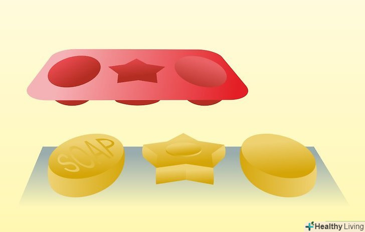 Дістаньте мило з формочок і покладіть на підставку для сушіння. Дайте милу настоятися як мінімум два тижні, щоб воно витрималося.