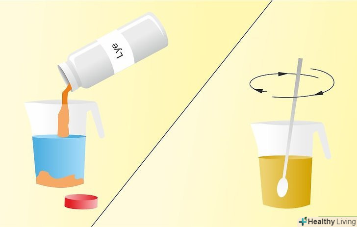 - Будьте дуже обережні, коли будете додавати луг в воду. Щоб уникнути опіків лугом і шкідливих випарів, працюйте в гумових рукавичках в добре провітрюваній кімнаті.