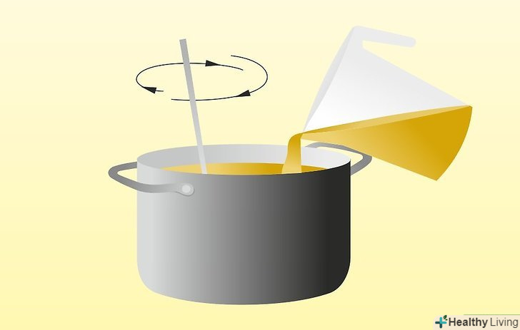 Енергійно перемішуйте, поки в милі не почнуть з'являтися сліди.- «сліди» з'являються, коли ви зможете зробити лінію на суміші ложкою. Іншими словами, коли суміш стане помітною мильною текстурою.