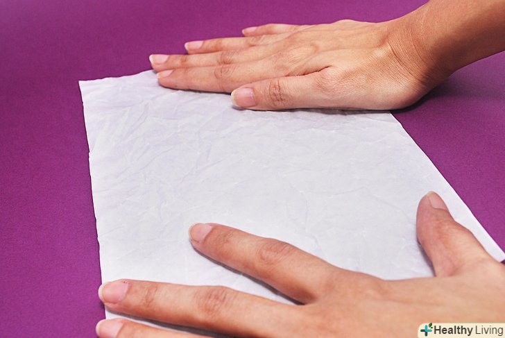 Покладіть папір на сковорідку і включіть на середній вогонь, скористайтеся ложкою або паличкою і обережно натискайте на папір протягом 30 секунд; так на папері з'являться маленькі коричневі плями.