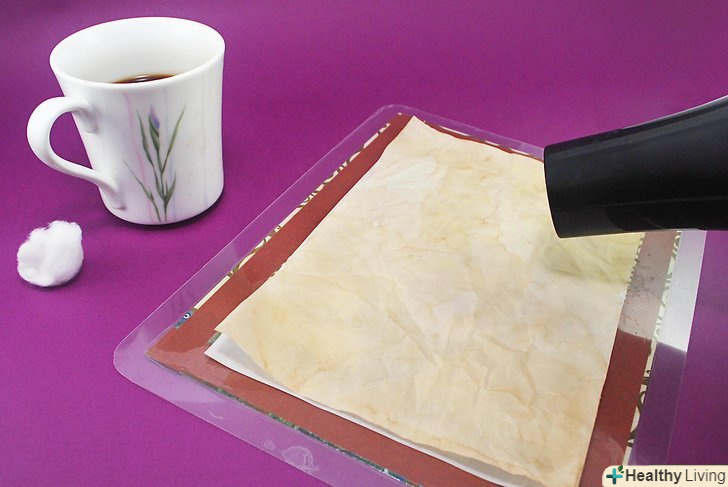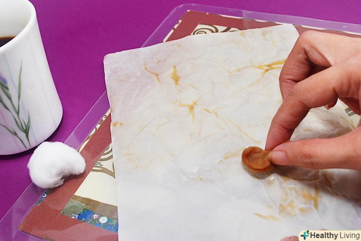Занурте ватний тампон в чашку з теплою кавою і рівномірно нанесіть по всьому папері.