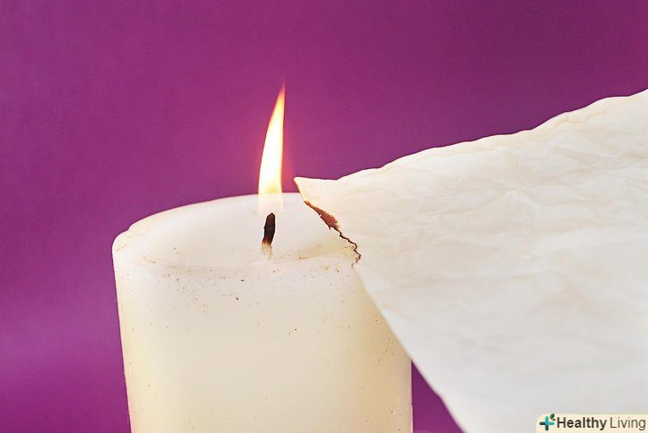 Запаліть свічку і обережно підпаліть краю, намагаючись, щоб папір не загорілася, інакше велика її частина може зіпсуватися. не забудьте, що займатися цим потрібно далеко від легкозаймистих предметів.