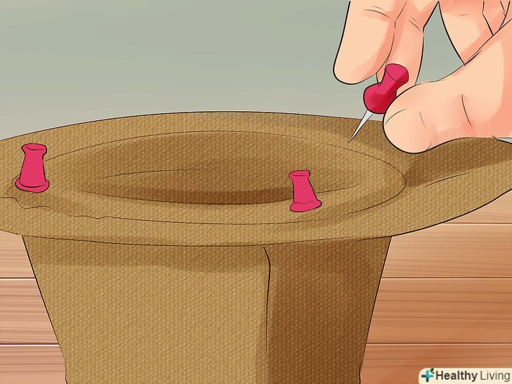 Покладіть тулію поверх денця капелюхи. покладіть виворітного стороною вгору денце на робочу поверхню і встановіть зверху тулію зворотною стороною. Зафіксуйте на місці.- Скріпіть частини якомога ближче до краю, щоб уникнути їх зміщення.