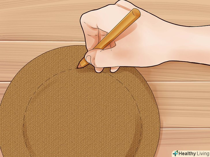 Виріжте денце циліндра. Вам потрібно вирізати тільки один шматок матеріалу для денця капелюха. Виріжте коло діаметром 8 дюймів (20,3 см).- На відміну від полів і тулії, для денця або "кришки" не потрібно посиленої конструкції, тому потрібен тільки один шматок тканини. Хоча якщо вам не подобається зовнішній вигляд одного шару, ви можете подвоїти цю частину капелюха, додавши другий шматок тканини таких же розмірів.