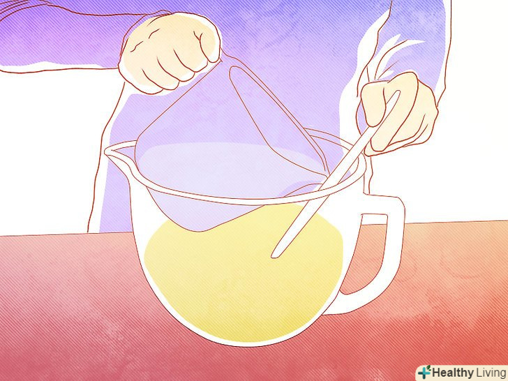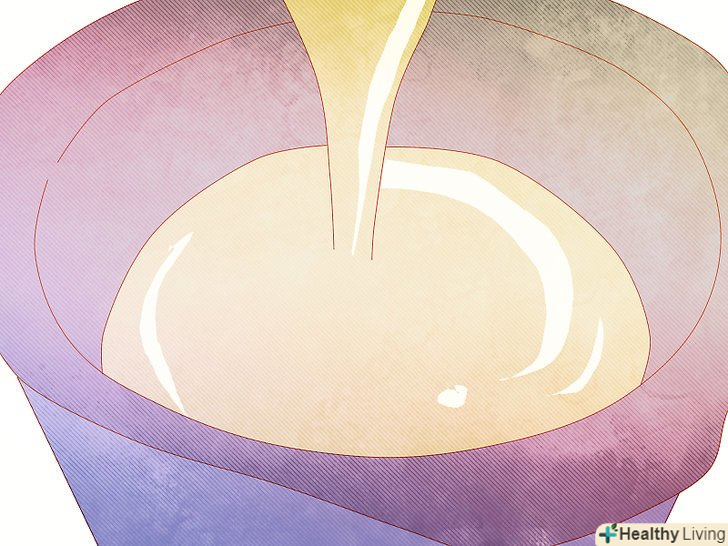 Працюйте швидко, оскільки гаряче мило може швидко затвердіти, якщо залишити його остигати надовго. Примітка: щоб заощадити час ви можете додати парфумерні масла в суміш жирів перед тим як вливати туди суміш води і лугу – це допоможе зробити суміш більш податливою для заповнення форм.