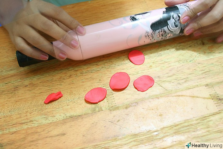Тепер знайдіть тонку паличку, яка послужить стеблом майбутньої троянди.- Розкачайте маленький шматочок пластиліну в тонку смужку, краї якої будуть трохи тонше центру. товщина смужки не повинна перевищувати 5 мм, а краю зробіть настільки тонкими, наскільки зможете!
