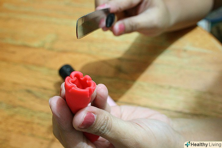 Тепер скрутіть вийшла смужку, як скручують рулет. нижню частину трохи округлите, а верхню - розширте. За допомогою ножа для масла спробуйте втиснути верхні краї, як показано на зображенні.