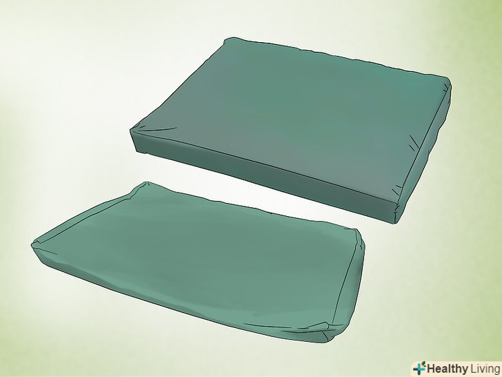 Зшийте чохол для собачої підстилки або ж саму підстилку. якщо у вас є невелика собака, можна скористатися методом пошиття наволочки з великої футболки і створити чохол для підстилки вихованця. Якщо у вас більша собака, виготовте зазначеним методом дві наволочки (без блискавок), а потім зшийте їх між собою майже до кінця, залишивши невеликий вхідний отвір. Візьміть додаткову кількість старого одягу і набийте отриманий чохол, щоб отримати абсолютно нову підстилку для собаки.