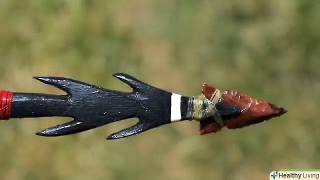 Знайдіть загострений камінчик. в ідеалі, камінчик повинен мати один гострий кінчик і один тупий, який добре сідає на палицю. Хороші камінчики матимуть форму конуса або леза і будуть трохи ширше товщини палички. Якщо потрібно, заточіть камінчик про інший звичайний або точильний камінь.- В якості альтернативи можна використовувати гострі осколки кісток, якщо вони є в наявності. Якщо ви розташовані в місцевості з вулканічною активністю, можете пошукати природний обсидіан (вулканічне скло) в місцях Старої остигнула лави.